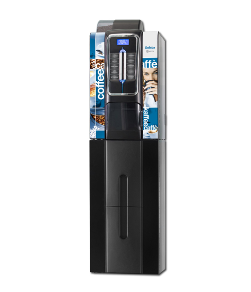 Solista complète le renouvellement de la gamme Necta dans la catégorie dédiée aux petits sites. Le nouveau distributeur de boissons chaudes table top se différencie par son design attractif et s’apprécie pour ces prestations de haut niveau en termes de capacité et de technologie. Le design, innovant et hightech, valorisé par l’éclairage à LED, le cadre chromé entourant la zone de sélection et d’élégants posters graphiques, constitue un des points forts de Solista, destiné à devenir le distributeur de référence sur son segment de marché